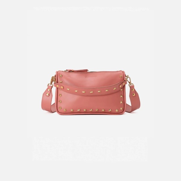 Bolso mediano rectangular con estrellas en la parte frontal. Cuenta con 2 asas desmontables, una corta con estrellas para llevar el bolso en la mano y un asa larga lisa para llevarlo al hombro o cruzártelo cómodamente.