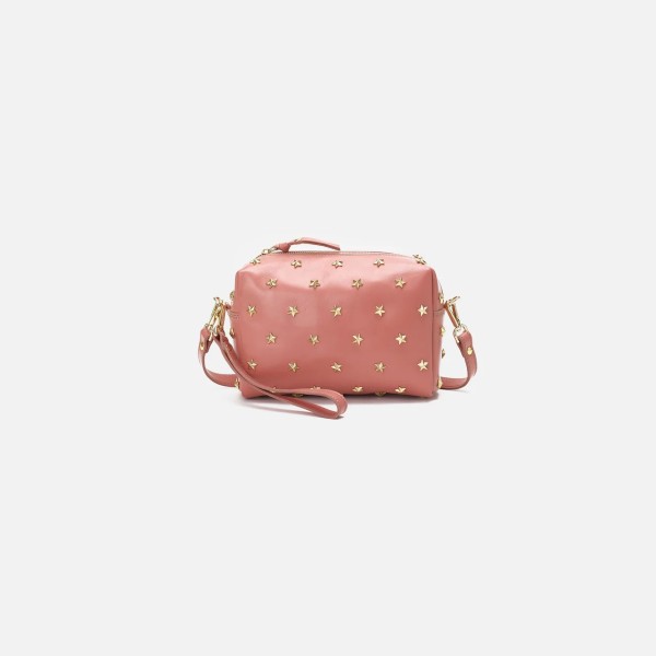Bolso mediano con estrellas decorativas bañadas en oro. Incluye un asa de muñeca para que puedas llevarlo como bolso de mano y un asa larga para llevarlo estilo bandolera.