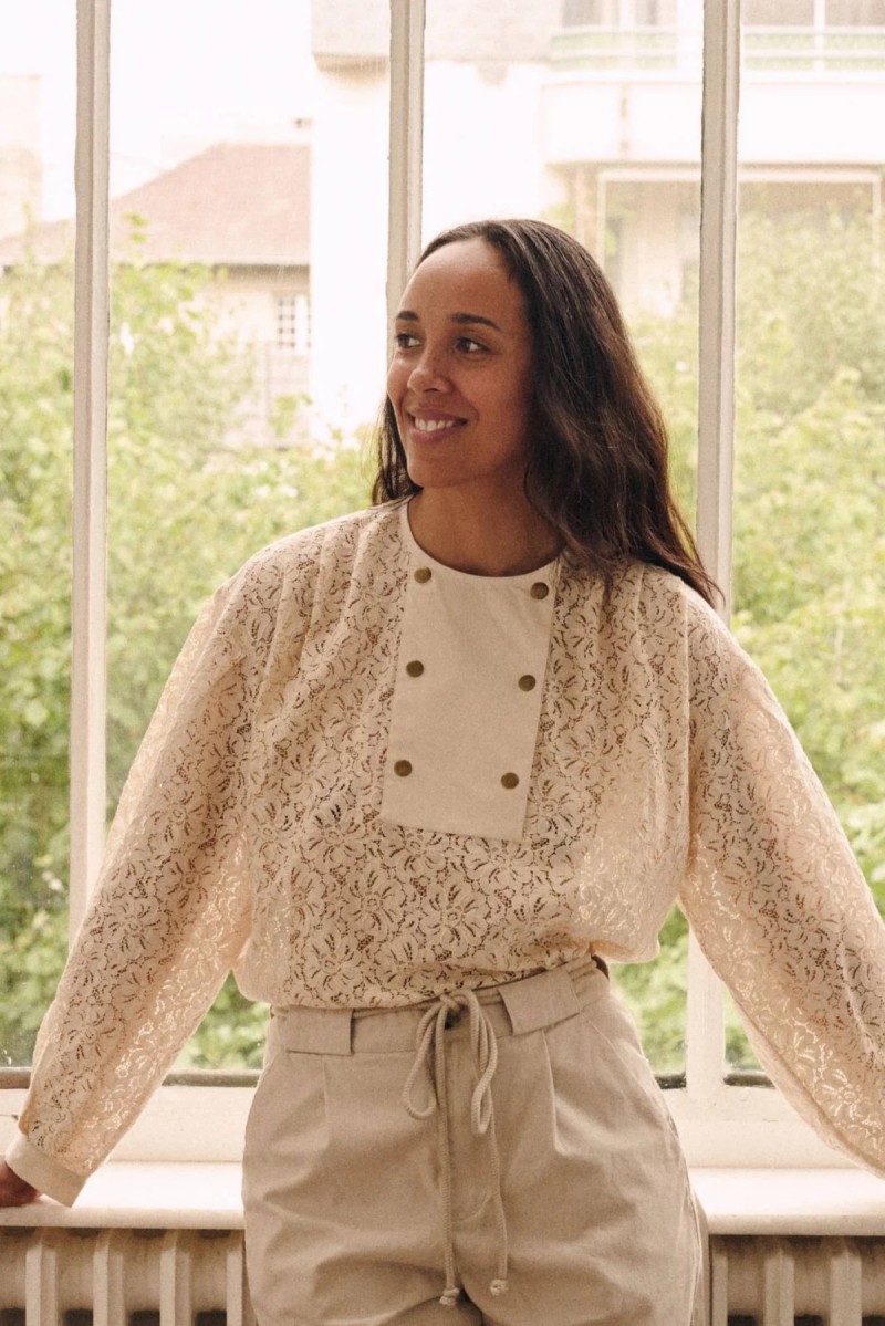 La blusa Cendre Lace por Leon & Harper revela toda la experiencia de la marca en el arte del detalle. El trabajo de encaje atrae un juego de transparencia en el cuerpo y las mangas, mientras que el plastron abotonado estructura la habitación con la modernidad. Las mangas largas traen un volumen sutil gracias a una muñeca ajustada, y el corte recto le da a la silueta un aspecto naturalmente asertivo. Esta blusa encuentra su lugar en una guardiaVestido en un espíritu libre, y se usa fácilmente en pantalones cónicos o un Falda abreviado de un aspecto diario ordenado.