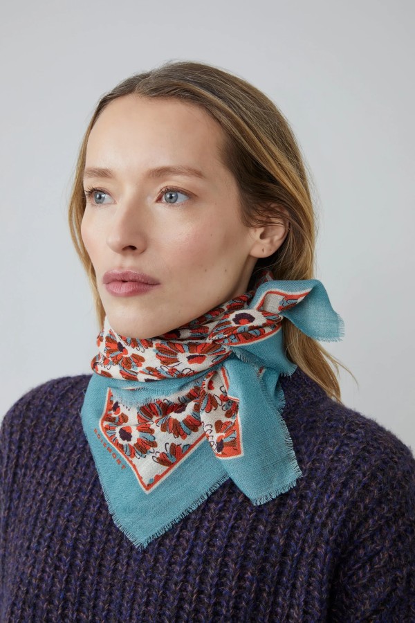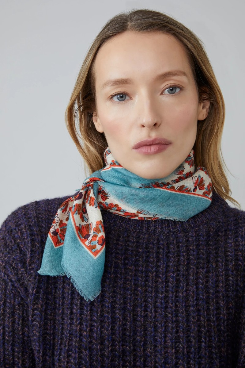 El pañuelo Croydon N°794 se inspira en la elegancia de los estampados ingleses, revisitando el espíritu Liberty con frescura y modernidad. Tejido a mano en la India en una lana suave y ligera, está disponible en formato de 70 x 70 cm, ideal alrededor del cuello o en el cabello. Un accesorio lleno de encanto, diseñado para acompañar las estaciones con poesía
