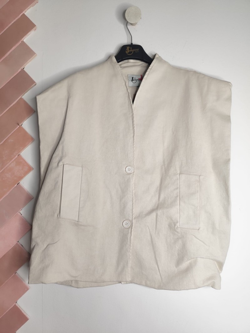 Chaleco, tejido jeans con hombro cuadrado color Crudo